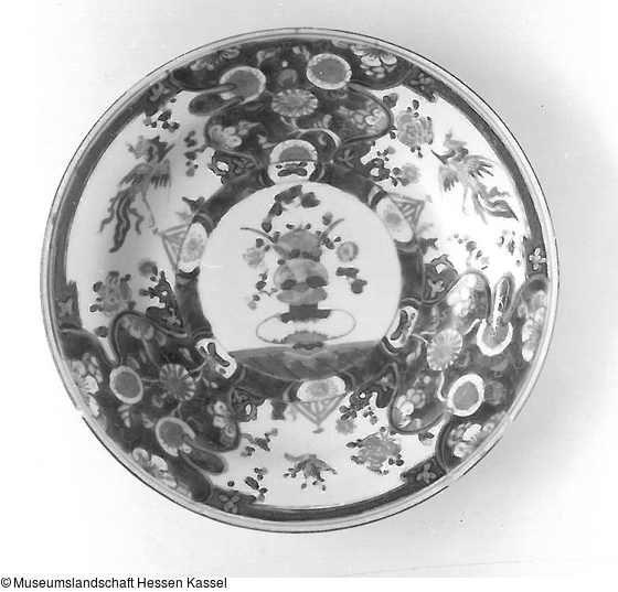 Imari-Stil. Vgl. KP OP 211b. Ältere Inventare B XIII, Nr.I 77 ("Acht flache Teller, 1 Stück defekt"); Concept Nr. 524, 525.