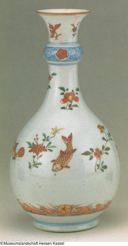 Porzellan; Aufglasurfarben in Braun, Grün, Eisenrot und Gold |