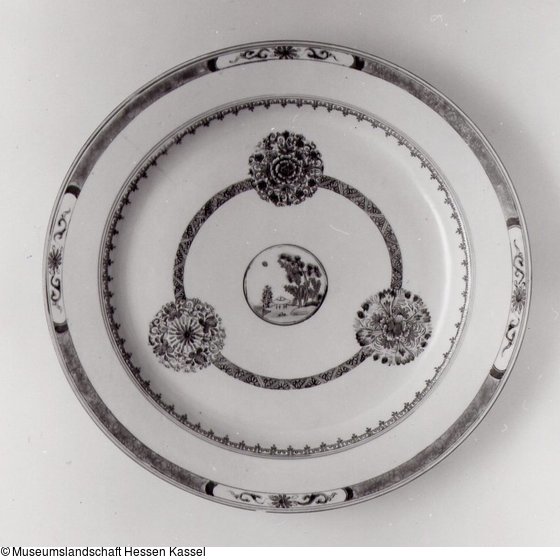 Teller mit Landschaftsmedaillon und ornamentalem Dekor |