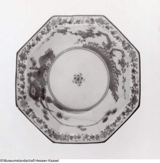 Achteckiges Schälchen mit Pflaumenbaum und Zierstein