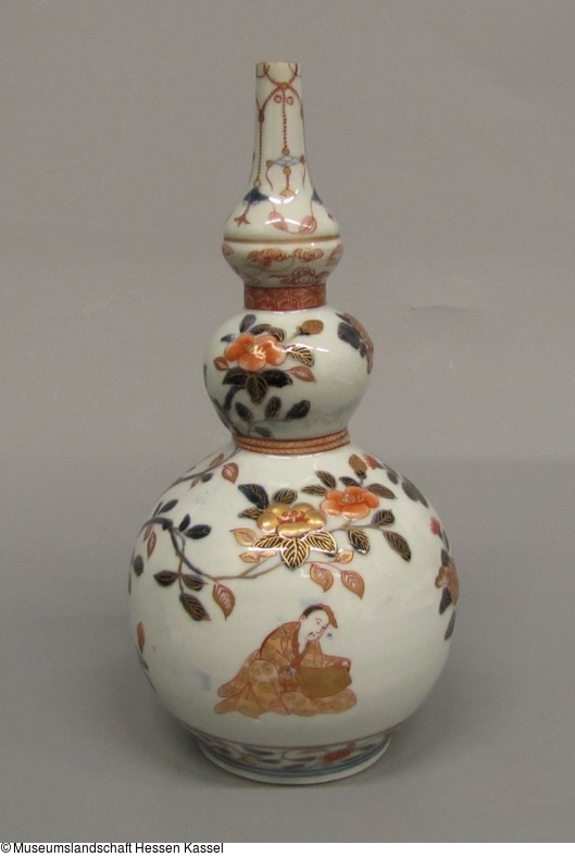 Porzellan; Unterglasur-Kobaltblau und Aufglasurfarben Eisenrot und Gold |