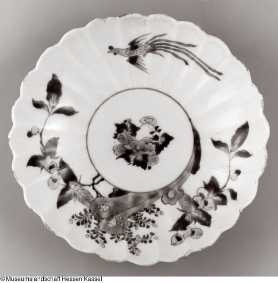 Vgl. KP OP 95a. Fragment einer zugehörigen Schale (Dm 13 cm) vorhanden. Ältere Inventare: B XIII, Nr. VII 6 ("Neun kleine Assietten"); Concept, Nrn. 1738, 1739.