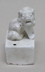 Porzellan; Blanc de Chine; Spuren kalter Bemalung in Schwarz und Rot |
