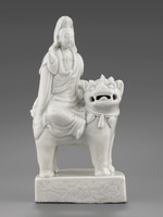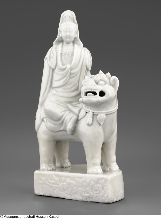 Porzellan; Blanc de Chine (?), Reste von Kaltbemalung (Halsband Löwe) |