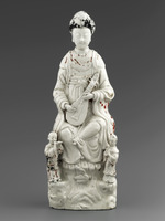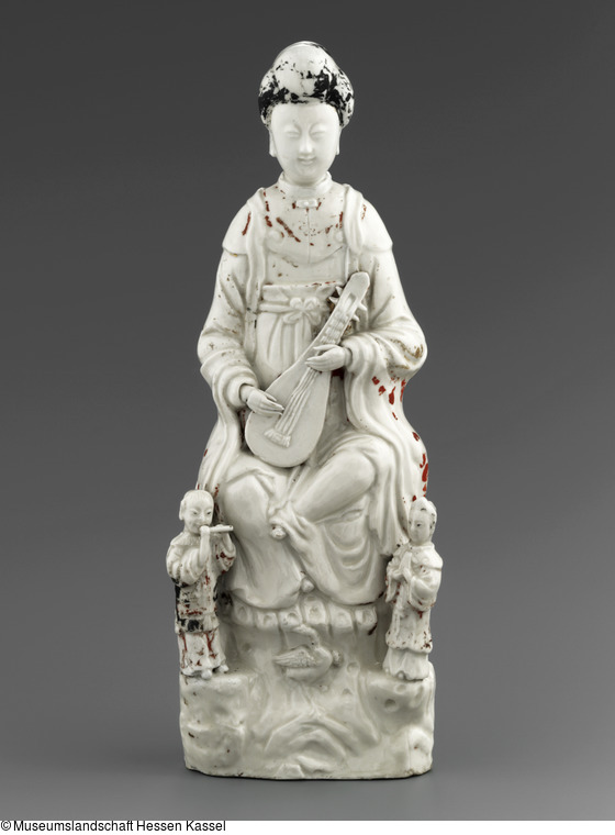 Porzellan; Blanc de Chine, Reste von Kaltbemalung und Goldstaffierung |