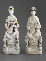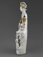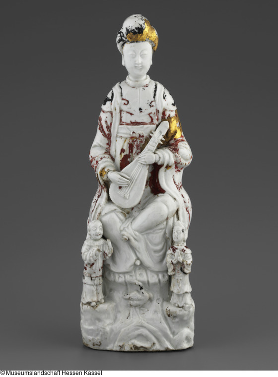 Porzellan; Blanc de Chine, Reste von Kaltbemalung und Goldstaffierung |