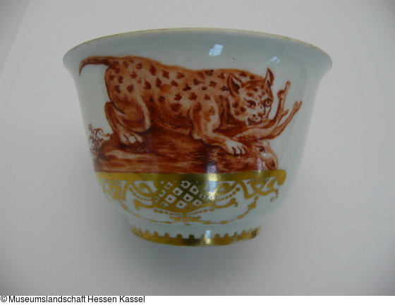 Porzellan, glasiert und bemalt, mit Goldstaffage