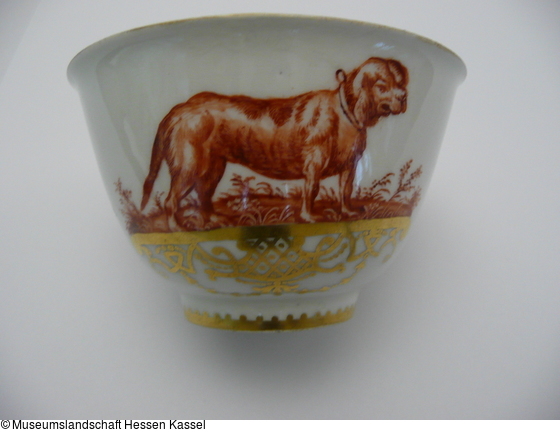 Porzellan, glasiert und bemalt, mit Goldstaffage |