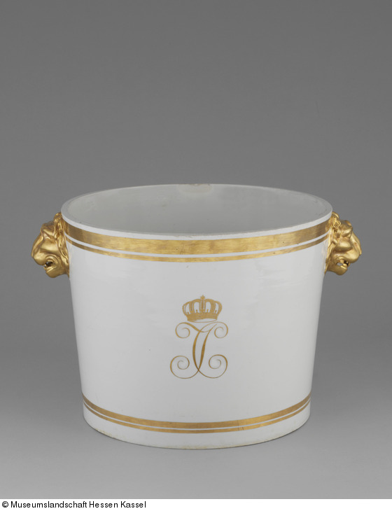 Cachepot mit goldenem bekrönten Monogramm der Initialen JC (Jérôme und Catharina) |