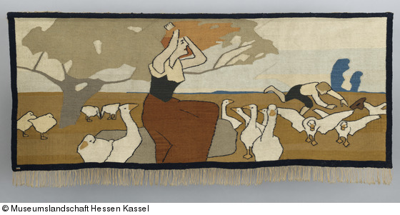Die "Scherrebeker Kunstwebschule" (1896-1905) wirkte insbeondere von namhaften Jugendstilkünstlern entworfene Wandteppiche und Behänge. Für den Marburger Maler Otto Ubbelohde gestaltete sie ein Motiv aus den Grimm`schen Märchen, für die er eine illustrierte Ausgabe (1909) schuf.