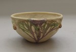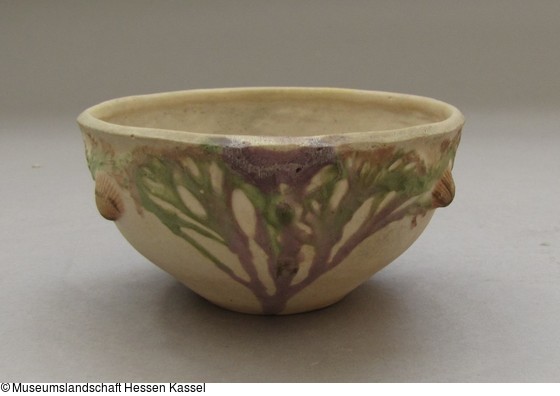 Glaspaste, sandfarben, violetter und grüner Reliefdekor |