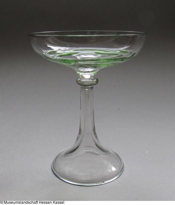 Glas, wasserhell mit grüntransparentem aufgeschmolzenen Dekor |