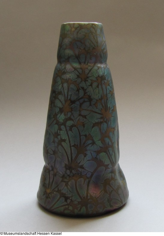 Steinzeug, irisierende Glasur, Dekor ausgespart |