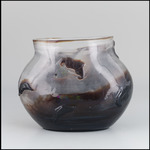 Modelgeblasenes, farbloses Glas, schwarzbraun überfangen, geätzt, geschnitten und geschliffen |