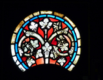 Ornamentscheibe aus der Stiftskirche in Wetter: Glasfensterstück aus einer vier- oder mehrpassigen Kirchenfensterrosette mit Pflanzen-Weinrankendekor