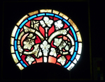 Ornamentscheibe aus der Stiftskirche in Wetter: Glasfensterstück aus einer vier- oder mehrpassigen Kirchenfensterrosette mit Pflanzen-Weinrankendekor |
