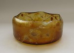 Modelgeblasenes und verformtes Farbglas, Silberbeize, Reliefätzung, Emailmalerei in Relief und Gold |