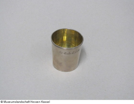 Kleiner Silberbecher mit Inschrift: Es lebe C.E.B. |