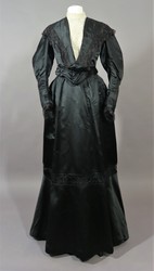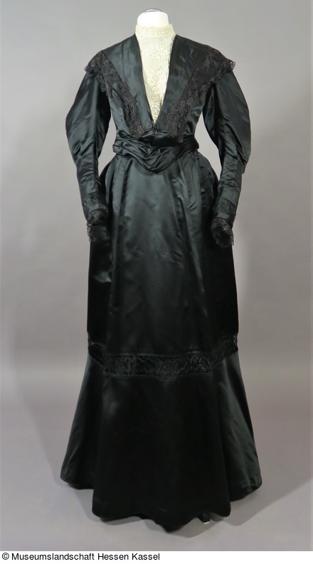 2-teiliges Damenkleid aus schwarzer Duchesseseide mit Spitzengarnitur |