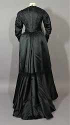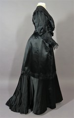 Der Unterrock ist aus schwarzem Baumwollsatin und am Saum mit einem angekrausten Volant mit Biesen an der Unterkante besetzt.
