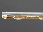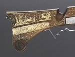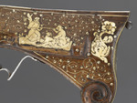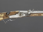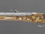 Die Kasseler Radschlossbüchse fällt vor allem durch die reichen Bein- und Geweiheinlegearbeiten auf. Während entlang des Laufes ein sich wiederholendes Dekor von phantastischen Tierwesen verläuft, zeigen die Einlegearbeiten auf beiden Seiten des Kolbens Szenen einer Bärenjagd und die bereits vertraute Szene einer Hirschjagd mit Hunden und hornblasendem Jäger mit Jagdspieß (vgl. etwa KP B XIV.92).