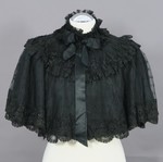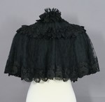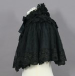 Pelerine aus schwarzem Taft mit einer Garnitur aus Spitzen und Perlenfransen.