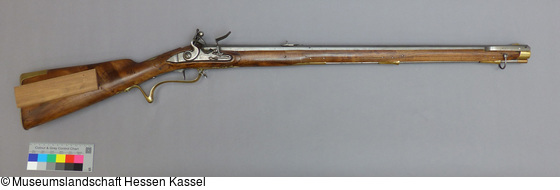 Steinschloß-Jägerbüchse, auf rechter Laufmündung Hirschfängerhalter (mit Nr. 79 gekennzeichnet) Gewehr |