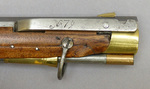 Steinschloß-Jägerbüchse, auf rechter Laufmündung Hirschfängerhalter (mit Nr. 79 gekennzeichnet) Gewehr