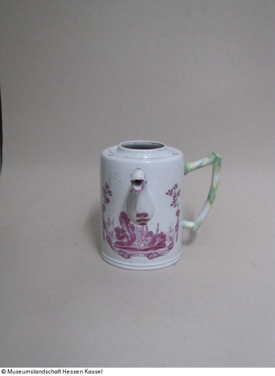 Porzellan, Bemalung in Purpurcamaieu und grüner Höhung |
