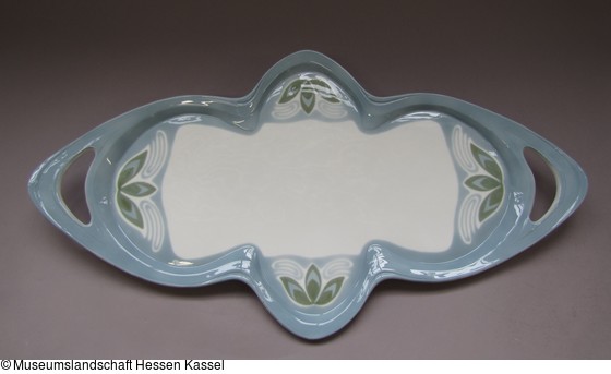 Theodor Grust (1857-1919), seit 1898 in der Meißener Malereiwerkstatt beschäftigt, unternahm mit diesem Dejeuner 1901/02 seinen ersten Versuch, ein komplettes Geschirr zu gestalten.