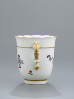 Porzellan, glasiert und bemalt, mit Goldstaffage |